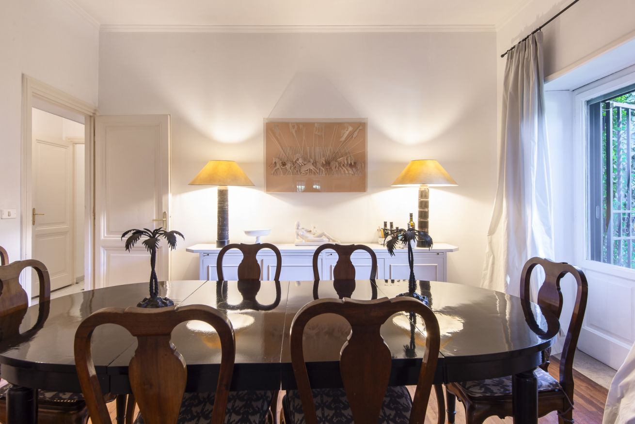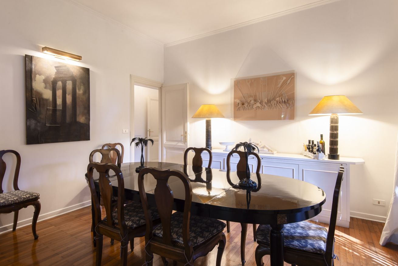 Sala da pranzo tradizionale: dotata di uno splendido tavolo per 10 persone, questa sala unisce eleganza e tradizione, ideale per ospitare cene formali.