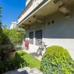Ingresso privato dal giardino: la villa ha un ingresso imponente e indipendente attraverso il giardino, che ne accresce la privacy e l'esclusività. Soggiorno con ampie finestre sul giardino: l'ampio soggiorno splendidamente arredato, completo di divani moderni e TV a grande schermo, è il cuore della casa, perfetto per riunioni o momenti in famiglia.