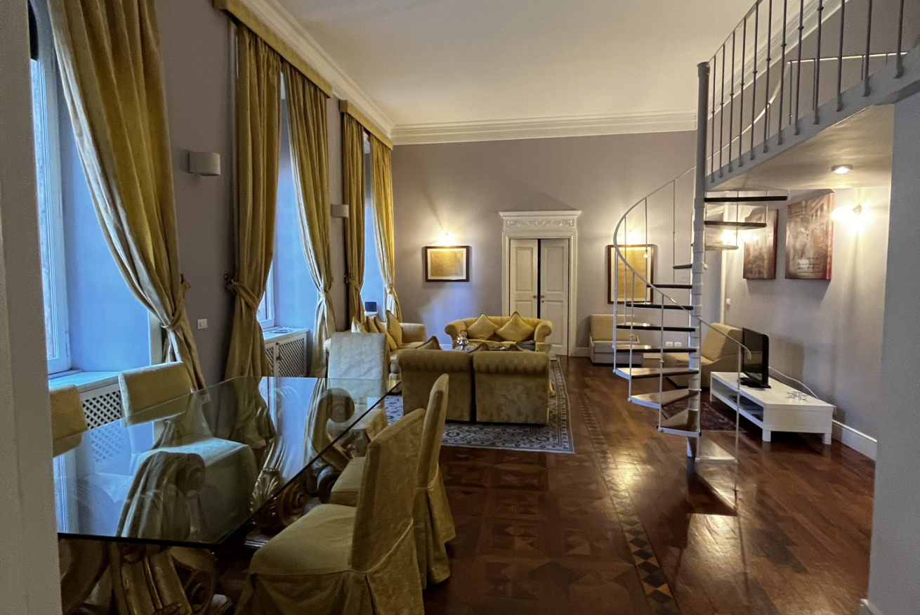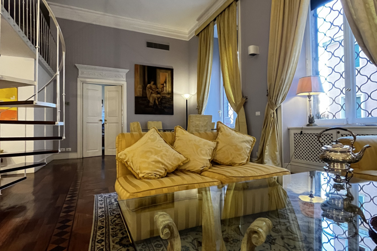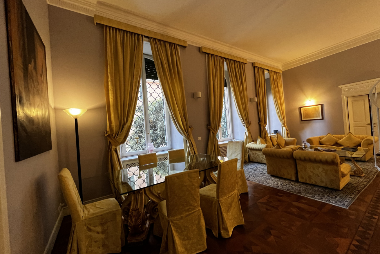 In un edificio molto esclusivo degli inizi del '900, con ascensore e portineria, lussuoso appartamento al primo piano di grandi dimensioni, composto da un ampio soggiorno con tre finestre che si affacciano su un tranquillo giardino e un soppalco con divano letto doppio, inoltre una moderna cucina completamente attrezzata. Scendendo le scale si raggiunge il piano terra con la zona notte composta da tre camere matrimoniali e tre bagni con vasca e doccia. Aria condizionata solo nelle camere da letto.