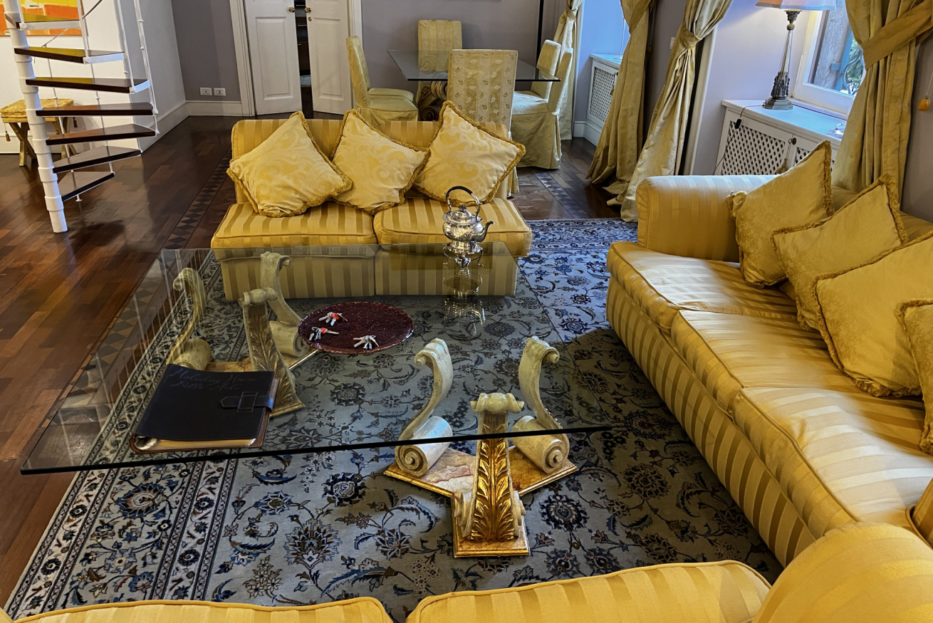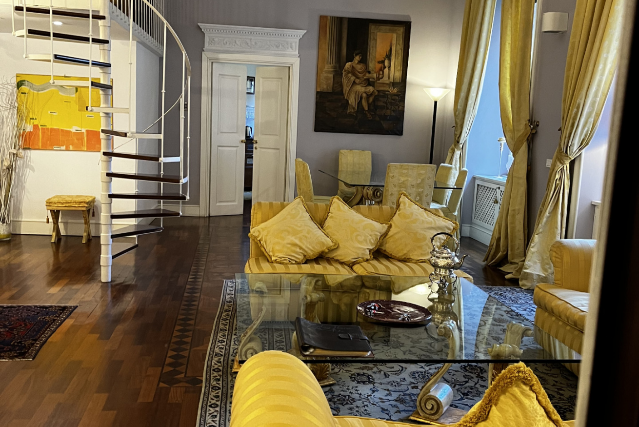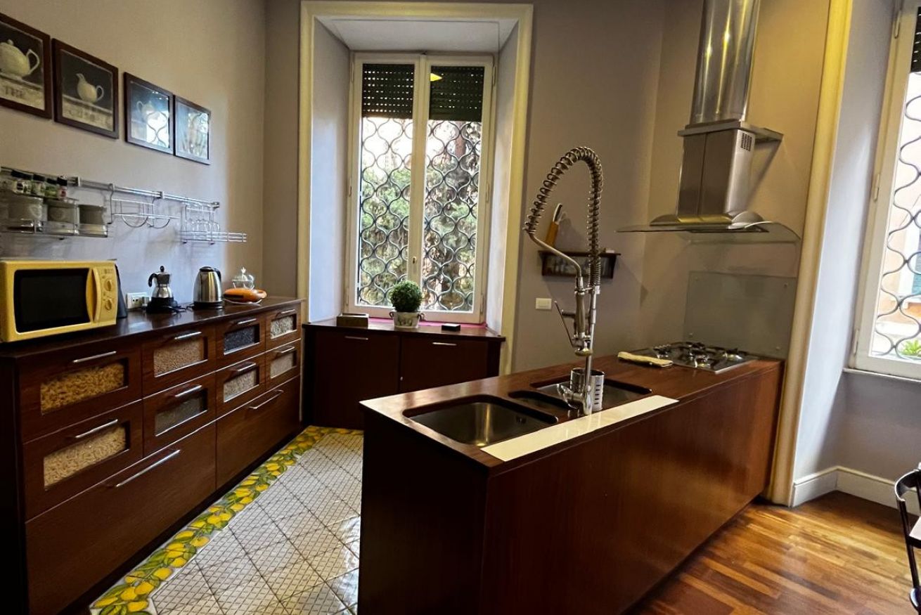 In un edificio molto esclusivo degli inizi del '900, con ascensore e portineria, lussuoso appartamento al primo piano di grandi dimensioni, composto da un ampio soggiorno con tre finestre che si affacciano su un tranquillo giardino e un soppalco con divano letto doppio, inoltre una moderna cucina completamente attrezzata. Scendendo le scale si raggiunge il piano terra con la zona notte composta da tre camere matrimoniali e tre bagni con vasca e doccia. Aria condizionata solo nelle camere da letto.